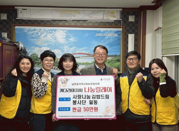 [NWS¹æ¼Û=Çѽ¸ñ ±âÀÚ]¿À»ê½Ã ³²Ã̵¿ ÇàÁ¤º¹Áö¼¾ÅÍ´Â Áö³ 18ÀÏ ¡®»ç¶û³ª´® ±è¹äµå¸² ºÀ»ç´Ü¡¯ÀÌ ¿¬¸»À» ¸Â¾Æ Áö¿ª ³» ¾î·Á¿î ÀÌ¿ôÀ» µ½±â À§ÇØ ¼º±Ý 50¸¸ ¿øÀ» ±âŹÇß´Ù°í ¹àÇû´Ù.