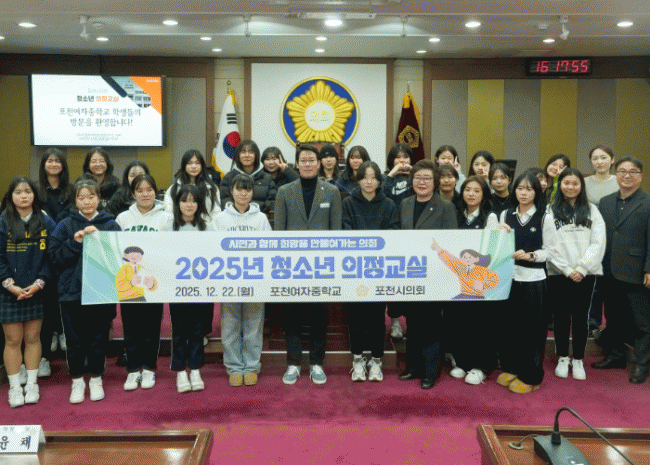 [NWS¹æ¼Û=Çѽ¸ñ ±âÀÚ]Æ÷õ½ÃÀÇȸ´Â 22ÀÏ Æ÷õ½ÃÀÇȸ º»È¸ÀÇÀå¿¡¼ Æ÷õ¿©ÀÚÁßÇб³ Çлý 30¿© ¸íÀ» ´ë»óÀ¸·Î ¡®Æ÷õ½ÃÀÇȸ û¼Ò³â ÀÇÁ¤±³½Ç¡¯À» °³ÃÖÇß´Ù.