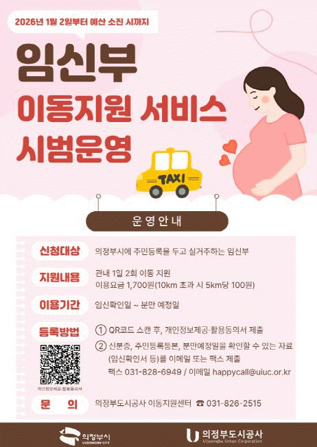 [NWS¹æ¼Û=Çѽ¸ñ ±âÀÚ]ÀÇÁ¤ºÎ½Ã°¡ ÀӽźÎÀÇ À̵¿ ºÒÆíÀ» ÇØ¼ÒÇÏ°í ¾ÈÀüÇÑ ¿ÜÃâÀ» Áö¿øÇϱâ À§ÇØ 2026³â 1¿ù 2ÀϺÎÅÍ ¡®ÀӽźΠÀ̵¿Áö¿ø ¼ºñ½º¡¯¸¦ ½Ã¹ü¿î¿µÇÑ´Ù.