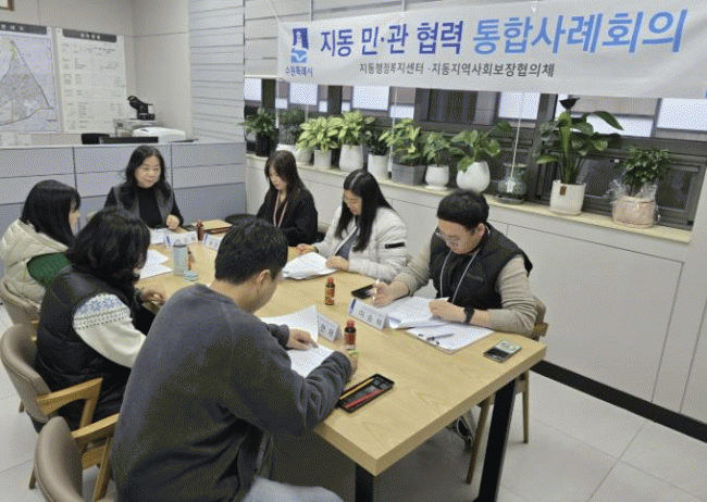 [NWS¹æ¼Û=Çѽ¸ñ ±âÀÚ]¼ö¿ø½Ã ÆÈ´Þ±¸ Áöµ¿Àº Áö³ 24ÀÏ Áöµ¿ ÇàÁ¤º¹Áö¼¾ÅÍ¿¡¼ Á¤½Å°Ç° ¹®Á¦¿Í °æÁ¦Àû ¾î·Á¿ò µî º¹ÇÕÀûÀÎ À§±â »óȲ¿¡ ³õÀÎ °¡±¸ÀÇ Áö¿ø ¹æ¾ÈÀ» ³íÀÇÇϱâ À§ÇØ ¹Î¡¤°ü ÅëÇÕ»ç·ÊȸÀǸ¦ °³ÃÖÇß´Ù.