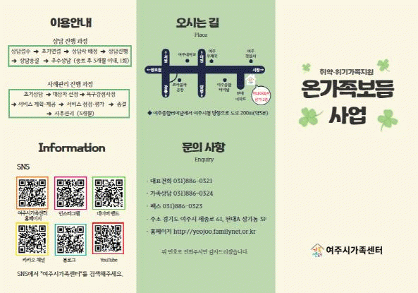 ¿©Áֽð¡Á·¼¾ÅÍ´Â 2026³â¿¡µµ »ó´ã ¹× »ç·Ê°ü¸®¸¦ Áö¼ÓÀûÀ¸·Î ¿î¿µÇÏ¿© ¿©ÁÖ½ÃÀÇ ´Ù¾çÇÑ °¡Á·ÀÌ ¾ÈÁ¤ÀûÀ¸·Î °¡Á¤»ýȰÀ» À¯ÁöÇÒ ¼ö ÀÖµµ·Ï »ý¾ÖÁֱ⠸ÂÃãÇü ÅëÇÕ ¼ºñ½º¸¦ Á¦°øÇÒ ¿¹Á¤ÀÌ´Ù.