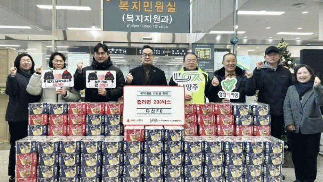 [NWS¹æ¼Û=Çѽ¸ñ ±âÀÚ]³²¾çÁֽô 26ÀÏ ´Ù»êÇàÁ¤º¹Áö¼¾ÅÍ¿¡¼ Áö¿ª üÀ°´ÜüÀÎ ´Ù»ê FC¿Í ÄŶó¸é 200°³ ÈÄ¿ø ¹°Ç° Àü´Þ½ÄÀ» °¡Á³´Ù°í ¹àÇû´Ù.