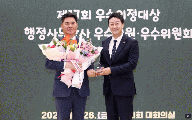 | °æ±âµµÀÇȸ Á¤ÇÏ¿ë ÀÇ¿ø, Á¦17ȸ ¿ì¼öÀÇÁ¤´ë»ó ¹× 2025³â ÇàÁ¤»ç¹«°¨»ç ¿ì¼öÀÇ¿ø µ¿½Ã ¼ö»ó ¿µ¿¹ =Çѽ¸ñ ±âÀÚ |