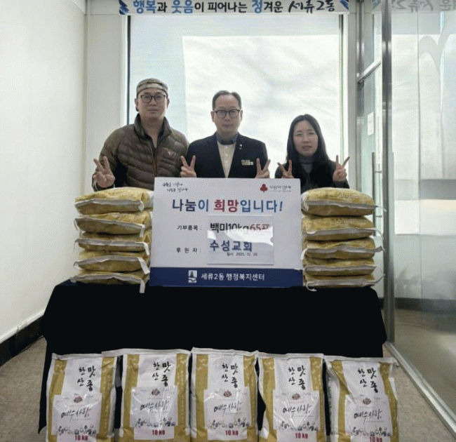[NWS¹æ¼Û=Çѽ¸ñ ±âÀÚ]Áö³ 20ÀÏ, ¼ö¿ø½Ã ±Ç¼±±¸ ¼¼·ùµ¿¿¡ ¼ÒÀçÇÑ ¼ö¼º±³È¸´Â ¿¬¸»¿¬½Ã¸¦ ¸Â¾Æ ¼¼·ù2µ¿ÇàÁ¤º¹Áö¼¾ÅÍ¿¡ ¹é¹Ì 10kg 65Æ÷¸¦ ÈÄ¿øÇß´Ù.