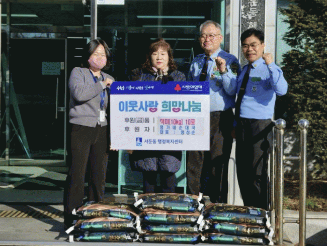 ¾ç¿À¼± ¼­µÐµ¿ÀåÀº ¡°Áö¿ª»çȸ¸¦ À§ÇÑ ÀÌ¿ô »ç¶ûÀ» ¸ö¼Ò ½ÇõÇÏ´Â ¸í°¡³×¼ø´ë±¹ ¸í¼º¼ø ´ëÇ¥´Ô²² °¨»çµå¸°´Ù¡±¸ç ¡°Àü´ÞÇØ ÁֽмÒÁßÇÑ ÈÄ¿ø¹°Ç°Àº ¾î·Á¿î ÀÌ¿ô¿¡°Ô Àß Àü´ÞÇØ µå¸®°Ú´Ù¡±¶ó°í ¸»Çß´Ù.