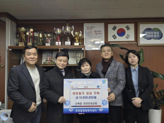 [NWS¹æ¼Û=Çѽ¸ñ ±âÀÚ]Æ÷õµ¿ ÇàÁ¤º¹Áö¼¾ÅÍ´Â Áö³ 29ÀÏ, ¼øº¹À½ Æ÷õÃʴ뱳ȸ¿¡¼ Æ÷õµ¿ Áö¿ª»çȸº¸ÀåÇùÀÇü¿¡ ¼º±Ý 1,000¸¸ ¿øÀ» ±âŹÇß´Ù°í ¹àÇû´Ù.
