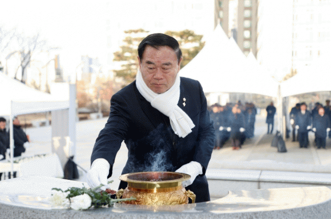 À̳¯ Âü¹è¿¡´Â ÀÌÀç½Ä ÀÇÀå°ú ±èÁ¤·Ä ºÎÀÇÀåÀ» ºñ·ÔÇÑ ¼ö¿øÆ¯·Ê½ÃÀÇȸ ÀÇ¿øµéÀÌ Âü¼®ÇØ ÇåÈ¿Í ºÐÇâÀ» Çϰí, ³ª¶ó¸¦ À§ÇØ Çå½ÅÇÑ ¼ø±¹¼±¿°ú È£±¹¿µ·ÉÀÇ ¼þ°íÇÑ Èñ»ýÀ» ±â¸®´Â ¹¬³äÀÇ ½Ã°£À» °¡Á³´Ù. ÀÇ¿øµéÀº »õÇØ¿¡µµ ½Ã¹ÎÀ» À§ÇÑ Ã¥ÀÓ ÀÖ´Â ÀÇÁ¤È°µ¿¿¡ ÃÖ¼±À» ´ÙÇÒ °ÍÀ» ´ÙÁüÇß´Ù.