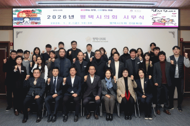 [NWS¹æ¼Û=Çѽ¸ñ ±âÀÚ]ÆòÅýÃÀÇȸ´Â 2ÀÏ, ½ÃÀÇȸ °£´ãȸÀå¿¡¼­ ÀÇ¿ø ¹× ÀÇȸ»ç¹«±¹ Á÷¿ø µî 60¿© ¸íÀÌ Âü¼®ÇÑ °¡¿îµ¥ 2026³â ½Ã¹«½ÄÀ» °¡Á³´Ù.
