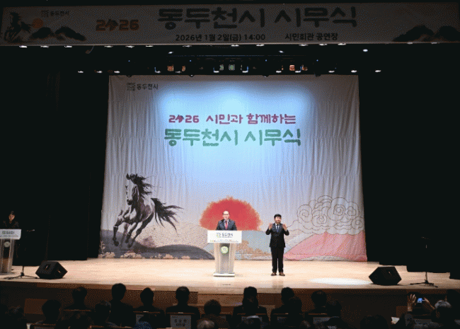 [NWS¹æ¼Û=Çѽ¸ñ ±âÀÚ]µ¿µÎõ½Ã´Â 2026³â º´¿À³â(ܰçíÒ´) »õÇØ¸¦ ¸Â¾Æ 1¿ù 2ÀÏ ¿ÀÈÄ 2½Ã ½Ã¹Îȸ°ü °ø¿¬Àå¿¡¼ ½Ã¹Î°ú ÇÔ²²ÇÏ´Â ¡®2026³â ½Ã¹«½Ä¡¯À» °³ÃÖÇß´Ù.