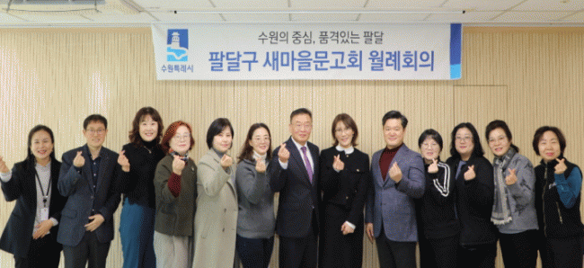 [NWS¹æ¼Û=Çѽ¸ñ ±âÀÚ]¼ö¿ø½Ã ÆÈ´Þ±¸ »õ¸¶À»¹®°íȸ´Â Áö³ 8ÀÏ, Ȳ±Ôµ· ½ÅÀÓ ÆÈ´Þ±¸Ã»Àå°ú ÇÔ²² ¿ù·ÊȸÀǸ¦ °³ÃÖÇÏ¸ç »õÇØ ù Ãâ¹ßÀ» ¾Ë·È´Ù.