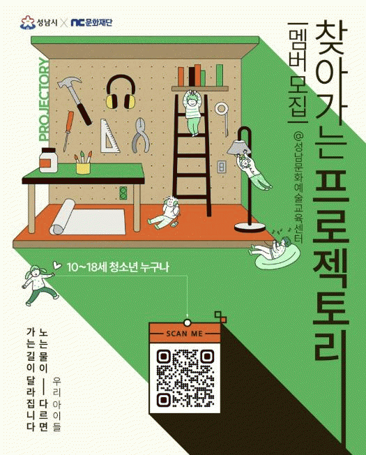 ÇÁ·ÎÁ§Å丮´Â ÇÁ·ÎÁ§Æ®(Project)¸¦ ÀÚÀ¯·Ó°Ô ÆîÄ¡´Â ½ÇÇè½Ç(Laboratory)À̶ó´Â Àǹ̷Î, û¼Ò³âÀÌ ÇÁ·ÎÁ§Æ® ±â¹Ý Ȱµ¿À» ÅëÇØ ¾ÆÀ̵ð¾î¸¦ ±¸ÇöÇÏ°í ¹®Á¦ ÇØ°á ¿ª·®À» Ű¿ï ¼ö ÀÖµµ·Ï µ½´Â ÀÚ±â ÁÖµµÇü âÀÇȰµ¿ ÇÁ·Î±×·¥ÀÌ´Ù. ÇÁ·Î±×·¥ÀÇ ±âȹ°ú ¿î¿µÀº ¿£¾¾(NC)¹®ÈÀç´ÜÀÌ ´ã´çÇϸç, ¼º³²½Ã´Â Çù¾à¿¡ µû¸¥ ÇÁ·Î±×·¥ÀÌ ¿øÈ°È÷ ÃßÁøµÉ ¼ö ÀÖµµ·Ï °ü¸®¿Í ÇàÁ¤Àû Áö¿øÀ» ¼öÇàÇÑ´Ù.