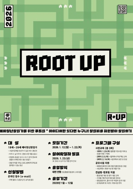'·çÆ®¾÷(Root Up)'Àº Á¤º¸ ¹× °æÇè ºÎÁ·À̳ª ³×Æ®¿öÅ© ÇÑ°è µîÀ¸·Î â¾÷¿¡ ¾î·Á¿òÀ» °Þ´Â ¿¹ºñ û³â â¾÷°¡¸¦ ´ë»óÀ¸·Î â¾÷ ±âÃÊ ¿ª·®°È ¹× ¼ºÀå Áö¿øÀ» ¸ñÀûÀ¸·Î ±âȹµÆ´Ù. Âü¿©¸¦ ¿øÇϴ û³âÀº 1¿ùºÎÅÍ ½ÃÀÛÇÏ´Â »çÀü±³À°(ÃÑ 3ȸÂ÷/Á¤ºÎ ¹× ±â°ü Áö¿ø»ç¾÷ ¼Ò°³, »ç¾÷°èȹ¼ ÀÛ¼º¿ä·É, »ç¾÷°èȹ¼ ÀÛ¼º ¹× º¸¿Ï) Âü¿© ÈÄ, Á¤ºÎÁö¿ø»ç¾÷ °ø¸ð¿¡ µû¸¥ ¸àÅ丵 ¹× ±³À° µîÀ» Á¦°ø ¹ÞÀ» ¼ö ÀÖ´Ù.