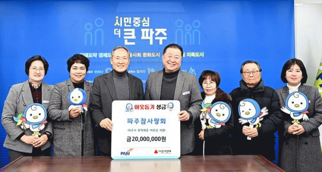 [NWS¹æ¼Û=Çѽ¸ñ ±âÀÚ]ÆÄÁֽô 13ÀÏ ÆÄÁÖÂü»ç¶ûȸ·ÎºÎÅÍ °ü³» Àú¼Òµæ Ãë¾à°èÃþ ¾î¸£½Å »ýȰºñ Áö¿øÀ» À§ÇÑ ¼º±Ý 2,000¸¸ ¿øÀ» ±âŹ ¹Þ¾Ò´Ù°í ¹àÇû´Ù.