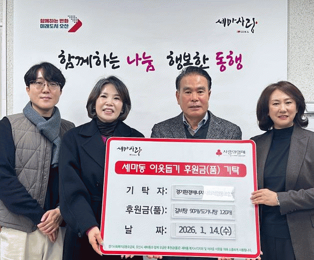 | ¿À»ê½Ã ¼¼¸¶µ¿, °æ±âȯ°æ¿¡³ÊÁö»çȸÀûÇùµ¿Á¶ÇÕÀ¸·ÎºÎÅÍ À§±âÀÌ¿ô Áö¿ø ¹°Ç° ±âŹ ¹Þ¾Æ =Çѽ¸ñ ±âÀÚ |