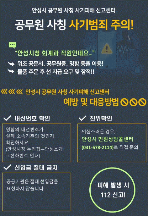 [NWS¹æ¼Û=Çѽ¸ñ ±âÀÚ]¾È¼º½Ã, ¡®°ø¹«¿ø »çĪ »ç±âÇÇÇØ ½Å°í¼¾ÅÍ¡¯ ¿î¿µ¡¦ ¼Ò»ó°øÀÎ ÇÇÇØ ¿¹¹æ ÃÑ·Â