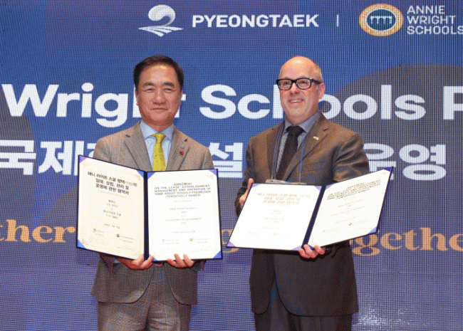 [NWS¹æ¼Û=Çѽ¸ñ ±âÀÚ]ÆòÅýô 15ÀÏ ÆòÅÃ¾ÆÆ®¼¾ÅÍ¿¡¼­ ¹Ì±¹ ¿ö½ÌÅÏÁÖ Å¸ÄÚ¸¶ ¼ÒÀç »ç¸³Çб³ ¾Ö´Ï ¶óÀÌÆ® ½ºÄð(Annie Wright Schools)°ú ±¹Á¦Çб³ ¼³¸³¡¤¿î¿µÀ» À§ÇÑ Çù¾à(MOA¡¤´ç»çÀÚ °£ ±Ç¸®¿Í Àǹ«¸¦ Á¤ÇÑ °è¾à)À» ü°áÇϰí Çù¾à½ÄÀ» °³ÃÖÇß´Ù. À̳¯ Çà»ç¿¡´Â Á¤Àå¼± ÆòÅýÃÀå°ú µ¥À̺ñµå ¿À¹öư ¾Ö´Ï ¶óÀÌÆ® ½ºÄð ÀÌ»çÀå ¹× Á¦ÀÌÅ© °úµå³î¶ó Ãѱ³ÀåÀ» ºñ·ÔÇØ ±¹È¸ÀÇ¿ø, ½Ã¡¤µµÀÇ¿ø, À¯°ü±â°üÀå, ÁÖÇѹ̱º, »ï¼º °ü°èÀÚ, ¿Ü±¹ÀÎÅõÀÚ±â¾÷ °ü°èÀÚ, Áö¿ª ÁֹΠµî ¾à 200¸íÀÌ Âü¼®Çß´Ù.