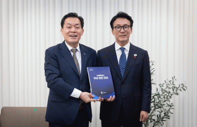 [NWS¹æ¼Û=Çѽ¸ñ ±âÀÚ]ÀÌÀçÁØ ¼ö¿øÆ¯·Ê½ÃÀåÀÌ ±è¹Î¼® ±¹¹«ÃѸ®¿¡°Ô ¼ö¿øÀÇ ¹Ì·¡ ¼ºÀå ±â¹Ý ±¸ÃàÀ» À§ÇÑ ÇÙ½É Çö¾ÈÀÌ ½ÇÇöµÉ ¼ö ÀÖµµ·Ï Á¤ºÎ Â÷¿ø¿¡¼­ Àû±ØÀûÀ¸·Î Áö¿øÇØ ´Þ¶ó°í °ÇÀÇÇß´Ù.