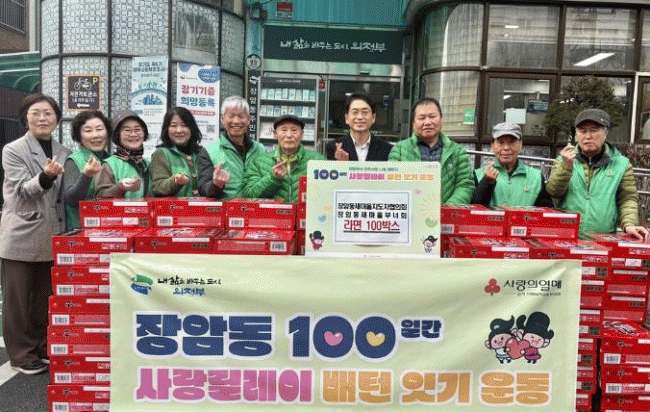 [NWS¹æ¼Û=Çѽ¸ñ ±âÀÚ]ÀÇÁ¤ºÎ½Ã Àå¾Ïµ¿Áֹμ¾ÅÍ´Â 1¿ù 15ÀÏ Àå¾Ïµ¿ »õ¸¶À»ÁöµµÀÚÇùÀÇȸ¡¤»õ¸¶À»ºÎ³àȸ°¡ °Ü¿ïö ¾î·Á¿î ÀÌ¿ôµéÀ» À§ÇØ ¶ó¸é 100»óÀÚ¸¦ Àü´ÞÇÏ¸ç ¡®100Àϰ£ »ç¶û¸±·¹ÀÌ ¹èÅÏ Àձ⡯¿¡ µ¿ÂüÇß´Ù°í ¹àÇû´Ù.