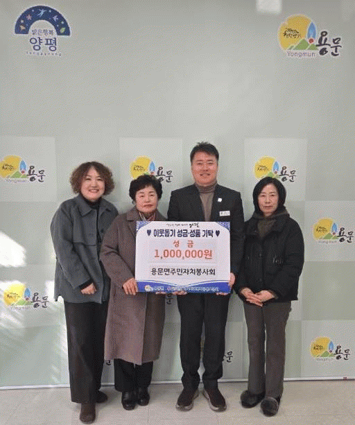 [NWS¹æ¼Û=Çѽ¸ñ ±âÀÚ]¾çÆò±º ¿ë¹®¸é ÁÖ¹ÎÀÚÄ¡ºÀ»çȸÀº Áö³ 16ÀÏ ¿ë¹®¸é ³» ¾î·Á¿î ÀÌ¿ôÀ» µ½±â À§ÇØ ¼º±Ý 100¸¸ ¿øÀ» ±âºÎÇÏ¸ç µû¶æÇÑ ³ª´®À» ½ÇõÇß´Ù.