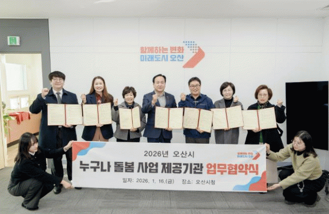 | ¿À»ê½Ã, '´©±¸³ª µ¹º½»ç¾÷' ÃßÁø À§ÇØ 6°³ ¼ºñ½º Á¦°ø±â°ü°ú ¾÷¹«Çù¾à ü°á =Çѽ¸ñ ±âÀÚ |