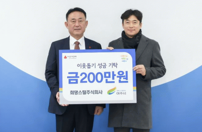[NWS¹æ¼Û=Çѽ¸ñ ±âÀÚ]Áö³ 19ÀÏ ¿©Áֽà »ï±³µ¿ ¼ÒÀç Èñ¸Á½ºÆ¿ÁÖ½Äȸ»ç ±è¿µ±â ´ëÇ¥´Â ¿©Áֽø¦ ¹æ¹®ÇÏ¿© ÀÌ¿ôµ½±â ¼º±Ý 200¸¸¿øÀ» ±âŹÇß´Ù.