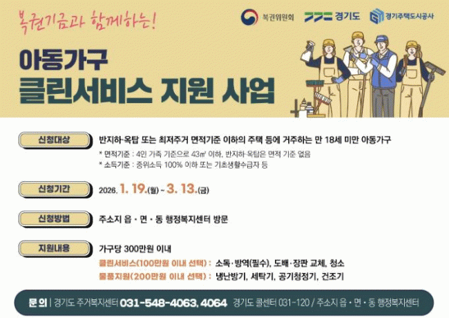 | ÀǿսÃ, º¹±Ç±â±Ý°ú ÇÔ²² ÇÏ´Â '¾Æµ¿°¡±¸ Ŭ¸°¼ºñ½º Áö¿ø »ç¾÷' ½Åû ¹Þ¾Æ ÃÖÀúÁְűâÁØ ¹Ì´Þ ¶Ç´Â ¹ÝÁöÇÏ¡¤¿Áž °ÅÁÖ ¸¸ 18¼¼ ¹Ì¸¸ Àú¼Òµæ ¾Æµ¿°¡±¸ ´ë»ó =Çѽ¸ñ ±âÀÚ |