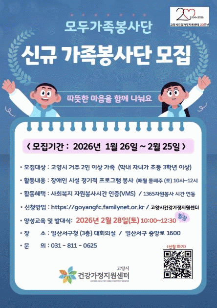 [NWS¹æ¼Û=Çѽ¸ñ ±âÀÚ]°í¾çƯ·Ê½Ã °Ç°­°¡Á¤Áö¿ø¼¾ÅÍ¿¡¼­´Â ¿À´Â 2¿ù 25ÀϱîÁö 2026³â ¡®°¡Á·ºÀ»ç´Ü¡¯Âü¿©ÀÚ¸¦ ¸ðÁýÇÑ´Ù.