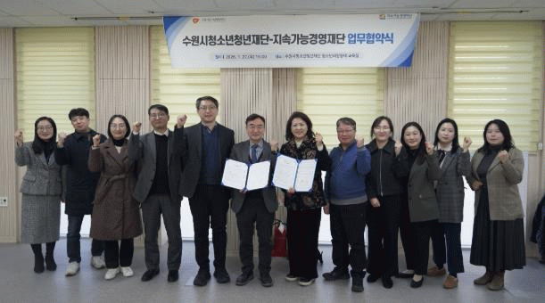 [NWS¹æ¼Û=Çѽ¸ñ ±âÀÚ]¼ö¿ø½Ãû¼Ò³âû³âÀç´Ü°ú Áö¼Ó°¡´É°æ¿µÀç´ÜÀº 1¿ù 22ÀÏ °í¸³?ÀºµÐ û¼Ò³â?û³â ¹× »çȸÀû Ãë¾à û¼Ò³â?û³â Áö¿øÀ» À§ÇÑ ¾÷¹«Çù¾à(MOU)À» ü°áÇß´Ù.