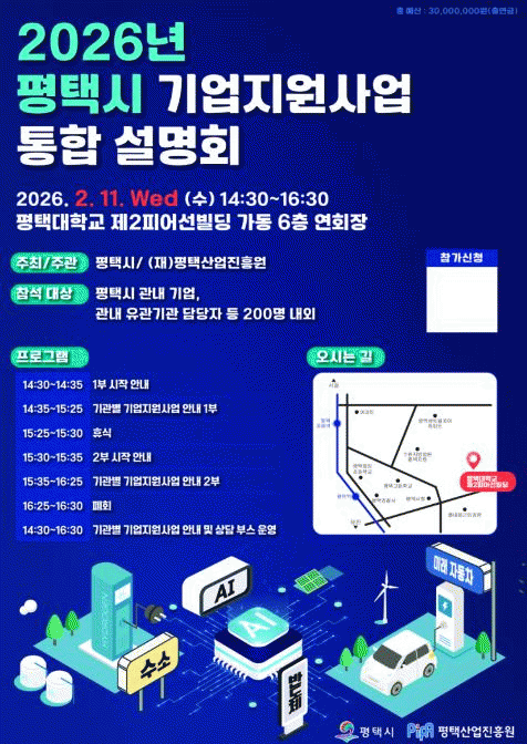 | ÆòÅýÃ, 2026³â Áß¼Ò±â¾÷ Áö¿ø»ç¾÷ ¼³¸íȸ °³ÃÖ 2¿ù 11ÀÏ ÆòÅôëÇб³ Á¦2ÇǾºôµù 6Ãþ ´ë°´ç =Çѽ¸ñ ±âÀÚ |