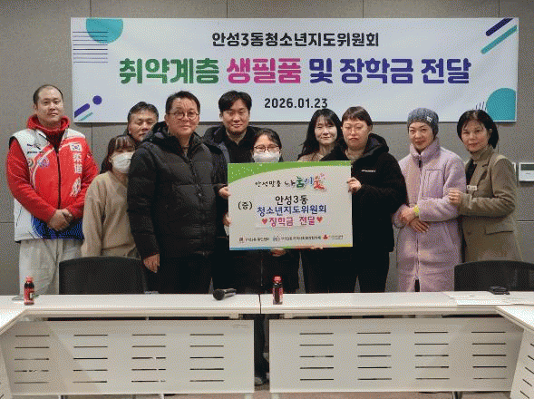 | ¾È¼º½Ã ¾È¼º3µ¿Ã»¼Ò³âÁöµµÀ§¿øÈ¸, Ãë¾à°èÃþ û¼Ò³â¿¡ ÀåÇÐ±Ý ¡¤ »ýÇÊǰ Àü´Þ =Çѽ¸ñ ±âÀÚ |