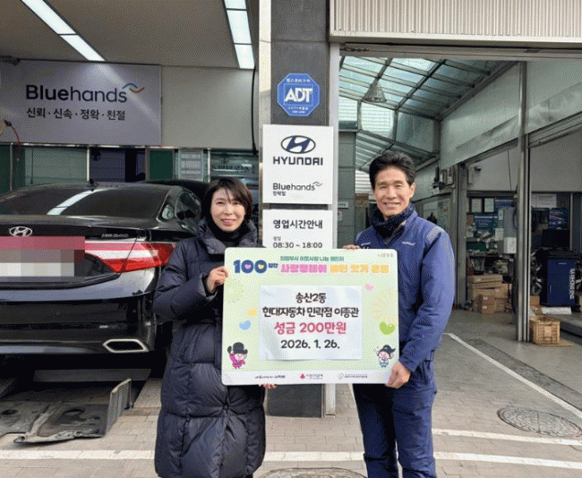 [NWS¹æ¼Û=Çѽ¸ñ ±âÀÚ]ÀÇÁ¤ºÎ½Ã ¼Û»ê2µ¿Áֹμ¾ÅÍ´Â 1¿ù 26ÀÏ Çö´ëÀÚµ¿Â÷ ºí·çÇÚÁî ¹Î¶ôÁ¡ ÀÌÁ¾°ü ´ëÇ¥°¡ ¼º±Ý 200¸¸ ¿øÀ» ±âŹÇϸç ÀÌ¿ô»ç¶ûÀ» ½ÇõÇß´Ù°í ¹àÇû´Ù.