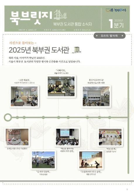 Áö³ÇØ¿¡´Â ÃÑ 2ȸ¿¡ °ÉÃÄ ¡®ºÏºê¸´Áö¡¯¸¦ ¹ßÇàÇØ ºÏºÎ±Ç µµ¼°üÀÇ ÁÖ¿ä ÇÁ·Î±×·¥°ú Ȱµ¿À» ¼Ò°³Çß´Ù. ÀÌ·¯ÇÑ ¿î¿µ °æÇèÀ» ¹ÙÅÁÀ¸·Î ¿ÃÇØ´Â ¿¬ 4ȸ ºÐ±âº° ¹ßÇàÀ» ÅëÇØ, 1¤ý4¤ý7¤ý10¿ù ¸»¿¡ ¼øÂ÷ÀûÀ¸·Î ¼±º¸ÀδÙ.
