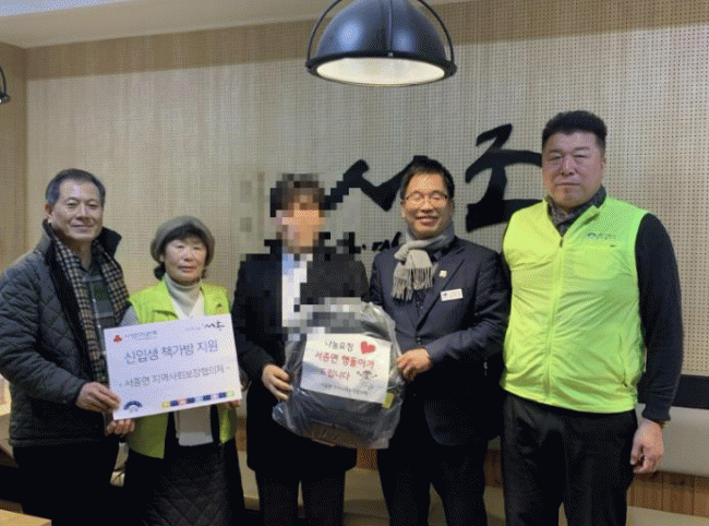 [NWS¹æ¼Û=Çѽ¸ñ ±âÀÚ]¼­Á¾¸é Áö¿ª»çȸº¸ÀåÇùÀÇü´Â Áö³­ 28ÀÏ, ¼­Á¾¸é ³» Ãë¾à°èÃþ ¾Æµ¿¡¤Ã»¼Ò³â °¡¿îµ¥ »õ Çб³¿¡ ÁøÇÐÇÏ´Â Çлý 11¸í¿¡°Ô Ã¥°¡¹æÀ» Àü´ÞÇß´Ù.