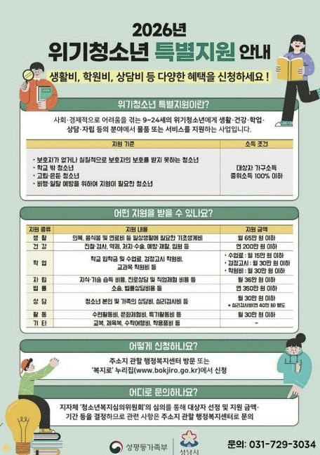 | ¼º³²½Ã À§±â û¼Ò³â »ýȰ¡¤Çо÷ 'Ưº°Áö¿ø'¡¦¿ù ÃÖ´ë 65¸¸¿ø ¿À´Â 25ÀϱîÁö û¼Ò³â º»ÀÎ ¶Ç´Â ÁÖº¯ »ç¶÷ÀÌ ½Åû °¡´É =Çѽ¸ñ ±âÀÚ |