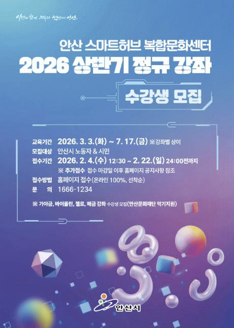 [NWS¹æ¼Û=Çѽ¸ñ ±âÀÚ]¾È»ê½Ã ½º¸¶Æ®Çãºêº¹ÇÕ¹®È¼¾ÅÍ´Â ¿À´Â 4ÀϺÎÅÍ »ó¹Ý±â Á¤±Ô°Á ¼ö°»ýÀ» ¸ðÁýÇÑ´Ù°í 3ÀÏ ¹àÇû´Ù.