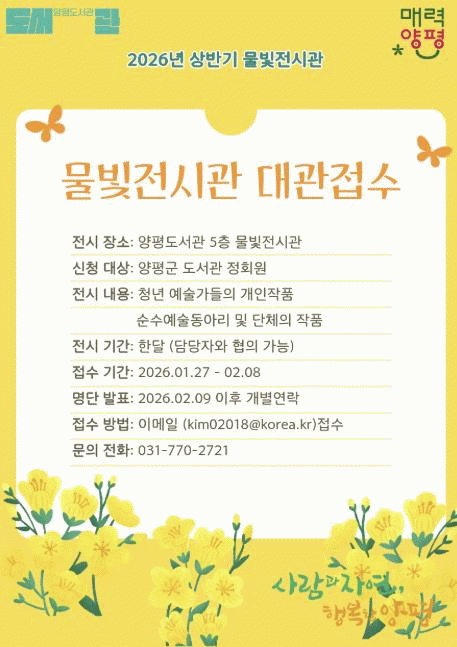 | ±º¹Î Âü¿© Àü½Ã À̾´Ù¡¦ ¾çÆò±º ¹°ºûÀü½Ã°ü, 2026³â »ó¹Ý±â ´ë°ü Á¢¼ö ½ÃÀÛ Àü¹® ¿¹¼ú°¡ºÎÅÍ ±º¹Î¡¤µ¿¾Æ¸®±îÁö, ´©±¸³ª Âü¿© °¡´ÉÇÑ ¿¸° Àü½Ã °ø°£ =Çѽ¸ñ ±âÀÚ |