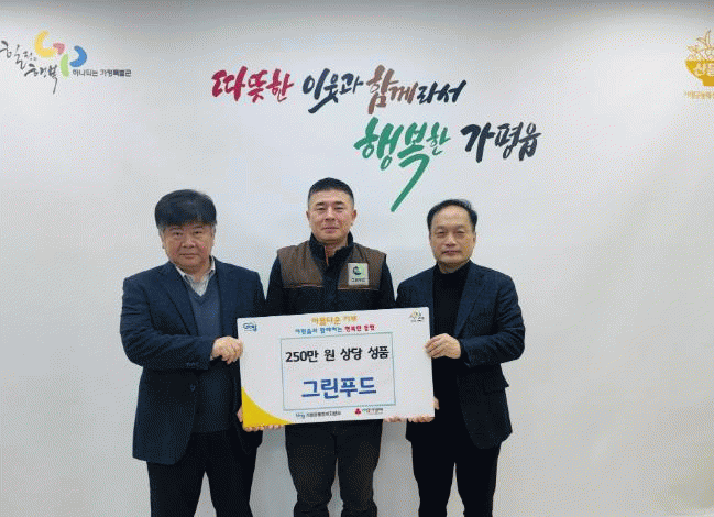 [NWS¹æ¼Û=Çѽ¸ñ ±âÀÚ]³ó¾÷ȸ»ç¹ýÀÎ ±×¸°Çªµå ÁÖ½Äȸ»ç´Â ÃÖ±Ù °¡Æò±º °¡ÆòÀ¾ ÇàÁ¤º¹Áö¼¾Å͸¦ ¹æ¹®ÇØ 250¸¸ ¿ø »ó´çÀÇ ¼ºÇ°À» Àü´ÞÇß´Ù. À̹ø¿¡ Àü´ÞµÈ ¼ºÇ°Àº ±×¸°Çªµå°¡ ³³Ç°ÇÏ´Â ¿µ¾ç À¯±â³ó ½ÄǰÀ¸·Î ÀÌÀ¯½ÄÀ» Á¦Á¶ÇÏ´Â ¢ßº£º£Äî¿¡¼ Áö¿øÇÑ °ÍÀÌ´Ù.