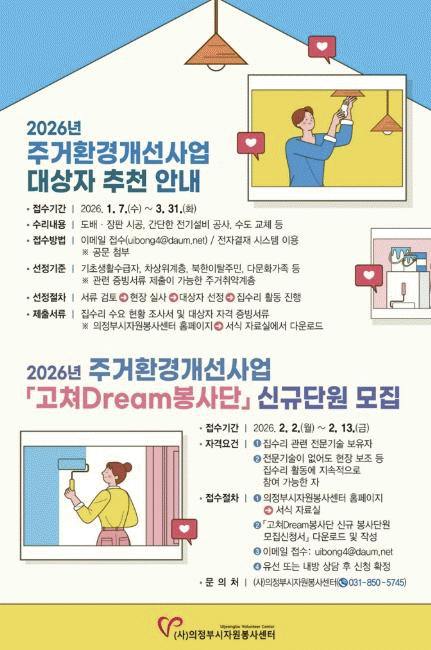 | ÀÇÁ¤ºÎ½ÃÀÚ¿øºÀ»ç¼¾ÅÍ, 2026³â '°íÃÄDreamºÀ»ç´Ü' ½Å±Ô´Ü¿ø ¸ðÁý =Çѽ¸ñ ±âÀÚ |