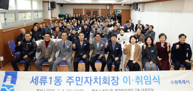 [NWS¹æ¼Û=Çѽ¸ñ ±âÀÚ]¼ö¿øÆ¯·Ê½ÃÀÇȸ ÀÌÀç½Ä ÀÇÀåÀº 2¿ù 4ÀÏ ¿ÀÈÄ 2½Ã, ¼¼·ù1µ¿ ÇàÁ¤º¹Áö¼¾ÅÍ ´ëȸÀǽǿ¡¼ ¿¸° ¼¼·ù1µ¿ ÁÖ¹ÎÀÚġȸÀå ÀÌ¡¤ÃëÀӽĿ¡ Âü¼®Çß´Ù.