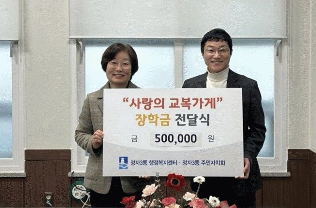 ¼Û±Ù¼÷ Á¤ÀÚ3µ¿ÀåÀº ¡°¸Å³â »ç¶ûÀÇ ±³º¹°¡°Ô¸¦ ÅëÇØ ÀÇ¹Ì ÀÖ´Â ³ª´®À» ½ÇÃµÇØ Áֽô ÁÖ¹ÎÀÚġȸ¿¡ °¨»çµå¸°´Ù¡±¸ç ¡°±âÅ¹ÇØ ÁֽŠÀåÇбÝÀÌ ²À ÇÊ¿äÇÑ Çлý¿¡°Ô Àß Àü´ÞµÉ ¼ö ÀÖµµ·Ï Çϰڴ١±°í ¸»Çß´Ù.