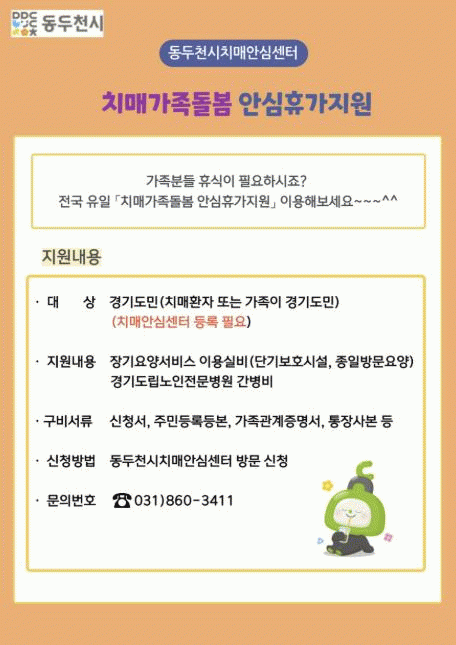 [NWS¹æ¼Û=Çѽ¸ñ ±âÀÚ]µ¿µÎõ½ÃÄ¡¸Å¾È½É¼¾ÅÍ´Â °æ±âµµ¿¡¼ Àü±¹ À¯ÀÏ·Î ½ÃÇà ÁßÀÎ 'Ä¡¸Å°¡Á·µ¹º½ ¾È½ÉÈÞ°¡ Áö¿ø»ç¾÷'À» Àû±Ø È«º¸Çϰí, Ä¡¸Å ȯÀÚ °¡Á·ÀÇ µ¹º½ ºÎ´ã ¿ÏÈ¿Í ÈÞ½Ä º¸ÀåÀ» À§ÇØ »ç¾÷ ¾È³»¿¡ ³ª¼¹´Ù.