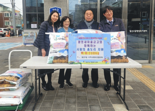 [NWS¹æ¼Û=Çѽ¸ñ ±âÀÚ]±¤¸í½Ã ö»ê2µ¿ Áö¿ª»çȸº¸ÀåÇùÀÇü´Â Áö³ 4ÀÏ ±¤¸í»õ¸¶À»±Ý°í·ÎºÎÅÍ ¡®»ç¶ûÀÇ Á»µµ¸® ¿îµ¿¡¯À» ÅëÇØ ¸¶·ÃÇÑ ½Ò 200kg(20kg 10Æ÷)À» ±âºÎ¹Þ¾Æ µ¿Àý±â Ãë¾à°èÃþ 10°¡Á¤¿¡ Àü´ÞÇß´Ù.