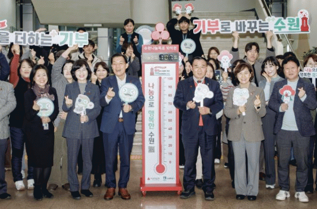 ¼ö¿ø½Ã¿Í °æ±â»çȸº¹Áö°øµ¿¸ð±Ýȸ°¡ Áö³­ÇØ 12¿ù 1ÀϺÎÅÍ µÎ ´Þ µ¿¾È Àü°³ÇÑ ¡®Èñ¸Á 2026 ³ª´®Ä·ÆäÀΡ¯ÀÌ ¸ð±Ý ¸ñÇ¥¾×(10¾ï ¿ø)À» Ãʰú ´Þ¼ºÇÏ¸ç ¸¶¹«¸®µÆ´Ù. 5ÀÏ ¿­¸° Æó¸·½Ä¿¡´Â ÀÌÀçÁØ ¼ö¿ø½ÃÀå, ¼ö¿ø½ÃÀÇȸ ÀÌÀç½Ä ÀÇÀåÀ» ºñ·ÔÇÑ ½ÃÀÇ¿ø, °æ±â»çȸº¹Áö°øµ¿¸ð±Ýȸ °ü°èÀÚ µîÀÌ Âü¼®Çß´Ù.