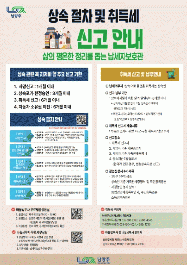 À̹ø »ç¾÷Àº ÇöÇà Áö¹æ¼¼¹ý¿¡ µû¶ó »ó¼ÓÀÎÀº »ó¼Ó°³½ÃÀÏ(»ç¸ÁÀÏ)ÀÌ ¼ÓÇÏ´Â ´ÞÀÇ ¸»ÀϺÎÅÍ 6°³¿ù À̳»¿¡ Ãëµæ¼¼¸¦ ½Å°í¡¤³³ºÎÇØ¾ß ÇÔ¿¡µµ ºÒ±¸Çϰí, ½Å°í ±âÇÑÀ» ³õÃÄ ½Ã¹ÎµéÀÌ °¡»ê¼¼ µîÀ» ºÎ´ãÇÏ´Â »ç·Ê¸¦ ¹æÁöÇϱâ À§ÇØ ¸¶·ÃµÆ´Ù.
