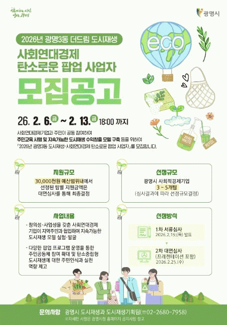 ½Ã´Â ¿À´Â 3¿ùºÎÅÍ 12¿ù±îÁö ±¤¸í3µ¿ ´õµå¸² µµ½ÃÀç»ý»ç¾÷ÀÇ ÀÏȯÀÎ ¡®2026³â ±¤¸í3µ¿ µµ½ÃÀç»ý-»çȸ¿¬´ë°æÁ¦ ź¼Ò·Î¿î ÆË¾÷ »ç¾÷¡¯À» ÃßÁøÇÑ´Ù°í 10ÀÏ ¹àÇû´Ù.