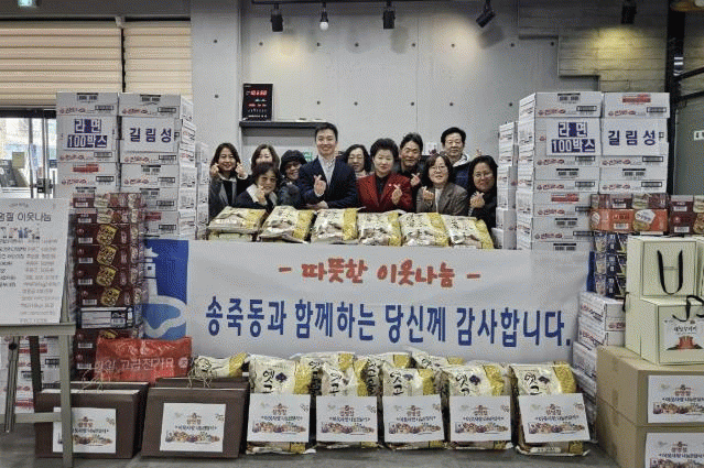 À̹ø Àü´Þ½ÄÀº ¼ÛÁ×µ¿ Áö¿ª»çȸº¸ÀåÇùÀÇü ÁÖ°üÀ¸·Î ÁøÇàµÆÀ¸¸ç, °ü³» ¾î·Á¿î ÀÌ¿ôµéÀÌ µû¶æÇÑ ¸íÀýÀ» º¸³¾ ¼ö ÀÖµµ·Ï Áö¿ª»çȸ°¡ ÇÔ²² ¶æÀ» ¸ð¾Ò´Ù.