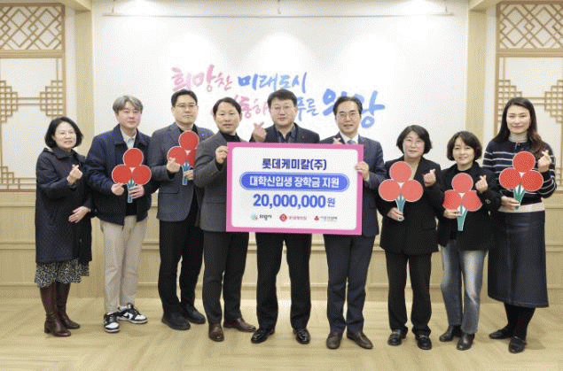 ¹®Á¤½Ä ·Ôµ¥ÄɹÌÄ® »ó¹«´Â ¡°ÀÓÁ÷¿øµé°ú ÇÔ²²ÇÏ´Â ³ª´®À¸·Î ¸¶·ÃµÈ À̹ø ÀåÇбÝÀÌ »çȸ·Î ù¹ßÀ» ³»µó´Â ´ëÇлýµé°ú ±× °¡Á·¿¡°Ô ÀÛÀº º¸ÅÆÀÌ µÇ±æ ¹Ù¶õ´Ù¡±¸ç¡°¾ÕÀ¸·Îµµ Áö¿ª»çȸ¿Í ÇÔ²² ¼ºÀåÇÏ´Â ±â¾÷À¸·Î¼ Áö¼ÓÀûÀÎ ³ª´®À» À̾°Ú´Ù¡±°í ¹àÇû´Ù.
