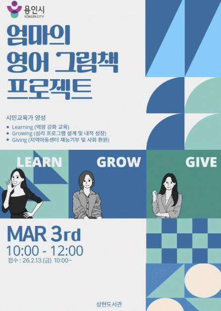 [NWS¹æ¼Û=Çѽ¸ñ ±âÀÚ]¿ëÀÎÆ¯·Ê½Ã »óÇöµµ¼­°üÀº ¿À´Â 13ÀϺÎÅÍ ¼±Âø¼øÀ¸·Î ¡®¾ö¸¶ÀÇ ¿µ¾î ±×¸²Ã¥ ÇÁ·ÎÁ§Æ®¡¯ Âü¿©ÀÚ 20¸íÀ» ¸ðÁýÇÑ´Ù.