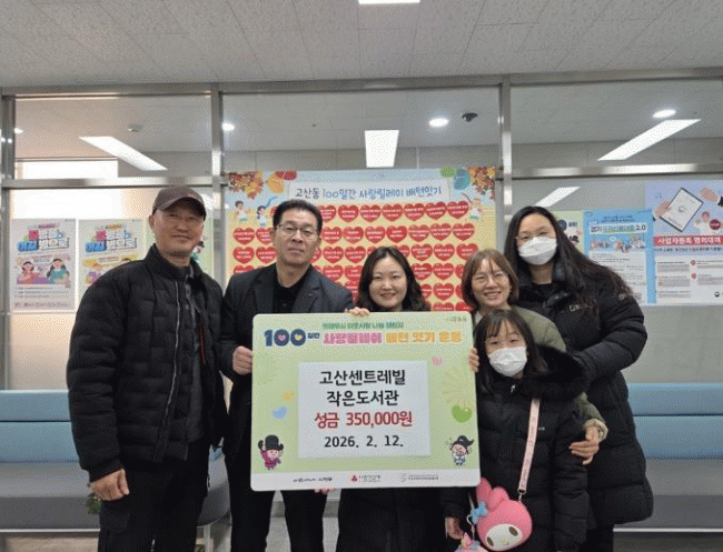 °í»ê¼¾Æ®·¹ºô ÀÛÀºµµ¼°üÀº ¸Å³â ¡®100Àϰ£ »ç¶û¸±·¹ÀÌ ¹èÅÏ Àձ⡯¿¡ Àû±ØÀûÀ¸·Î Âü¿©Çϰí ÀÖ´Ù. ¼º±Ý°ú ¿©¼º û¼Ò³âÀ» À§ÇÑ »ý¸®´ë ±âŹ¿¡ ÀÌ¾î ¿ÃÇØµµ ¹ÙÀÚȸ ¼öÀͱÝÀ» Àü´ÞÇÏ¸ç µû¶æÇÑ ³ª´®À» ½ÇõÇß´Ù.