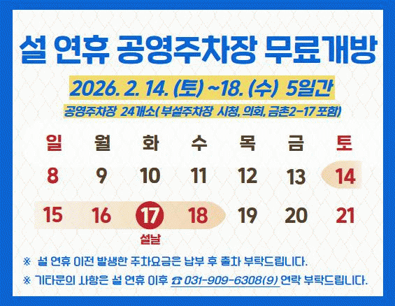 [NWS¹æ¼Û=Çѽ¸ñ ±âÀÚ]ÆÄÁÖµµ½Ã°ü±¤°ø»ç´Â 12ÀÏ, 2026³â ¼³ ¸íÀýÀ» ¸Â¾Æ ½Ã¹Î°ú °íÇâÀ» ¹æ¹®ÇÏ´Â ±Í¼º°´ÀÇ ±³ÅëÆíÀǸ¦ À§ÇØ °ø¿µÁÖÂ÷Àå 24°÷(ºÎ¼³ÁÖÂ÷Àå ½Ãû, ÀÇȸ, ±ÝÃÌ2-17 Æ÷ÇÔ)À» ¿À´Â 14ÀÏ(Åä)ºÎÅÍ 18ÀÏ(¼ö)±îÁö 5Àϰ£ ¹«·á·Î °³¹æÇÑ´Ù°í ¹àÇû´Ù.